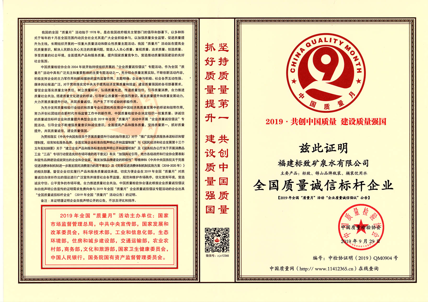 • 2020-03-252019年9月,標致公司榮獲“全國質量誠信標桿企業”稱號